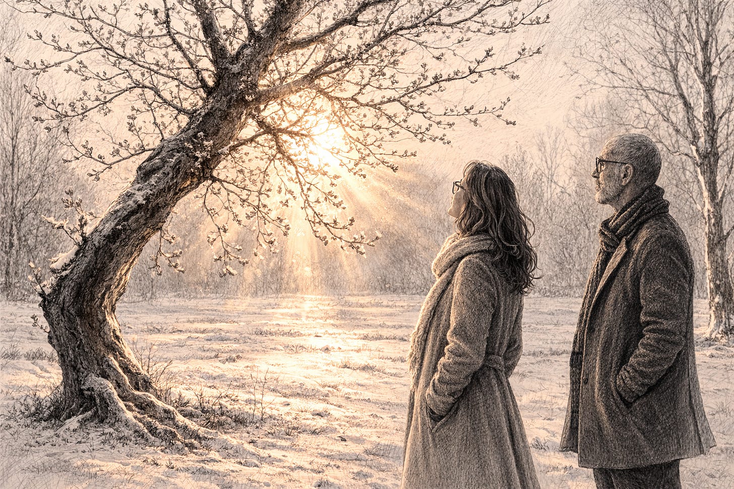 His words about the leaning tree linger somewhere inside me, like a bell that has been struck but has not yet finished sounding. I feel a quiet sense of wonder at the image he chose — that crooked tree blooming from the very place it was bent. It touches something in me. Something old. Something true.